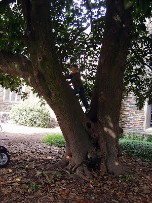 Today was homecoming at Duke. They played Miami (and lost)....but lots of people milling around campus today. We went back to the chapel as there was a wedding there last weekend and couldn't go in. Jay and I have gone in, but Mom, Dad and Travis had not...it's so pretty. but I think Travis was more impressed with the big Magnolia trees.
