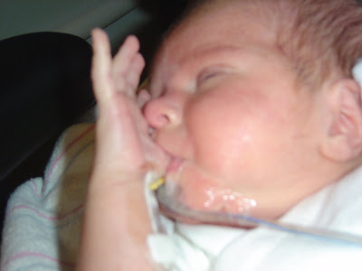Another blurry one...he was really enjoying his thumb, tape from the PICC line and all