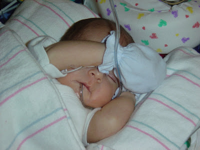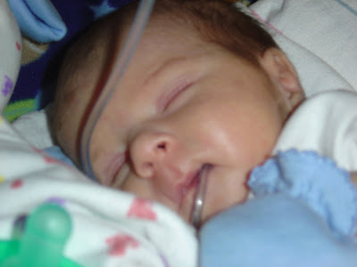 He also has begun to fuss a little when he hears me in the room talking. Like when I walk in first thing in the day, I usually talk with his nurse for a few minutes to find out the latest news, etc and then I get him out of bed, unless it's time for an assessment, then I get him out afterwards. He hears me and starts fussing and keeps up till I pick him up. Yep. I just love that :o)